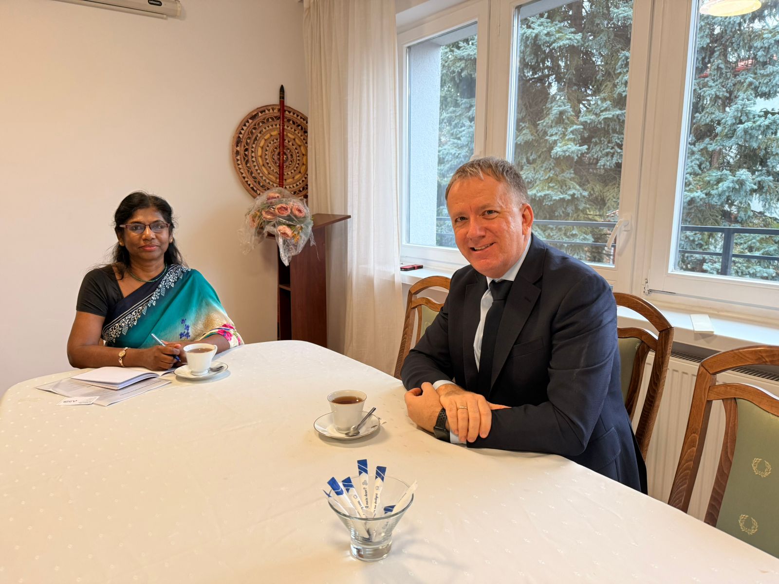 Ambassador of Sri Lanka to Poland, Priyangika Dharmasena met with CEO of The Polish Centre for International Aid (PCPM), Dr. Wojtek Wilk, on 18 December 2025 at the embassy premises to discuss the possibility of securing aid for Sri Lanka in the aftermath of “Cyclone Ditwah” in Sri Lanka.