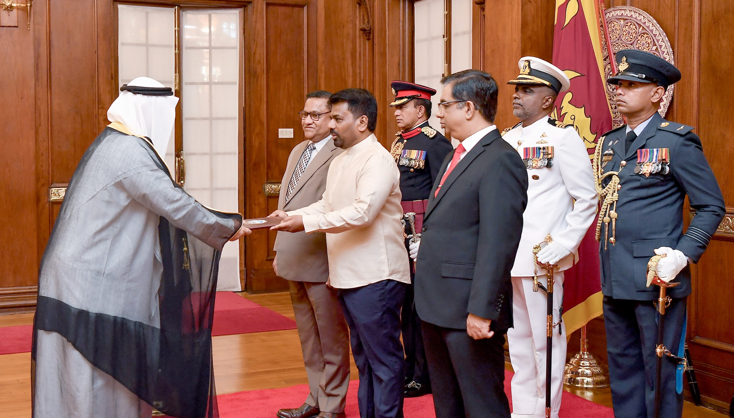 The Government of the State of Kuwait with the concurrence of the Government of Sri Lanka has appointed H.E. Saleh Mubarak Al-Sarawi as the resident Ambassador Extraordinary and Plenipotentiary to Sri Lanka based in Colombo. He has presented credentials to H.E. Anura Kumara Disanayaka, President of Sri Lanka on 20 April 2026 at 10.00 a.m. at the Presidential Secretariat, Colombo.